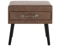 Dankzij het unieke design in een moderne vintage-stijl past deze bijzettafel in bijna elk interieur. Ook als nachtkastje in je slaapkamer doet hij het goed! De tafel wordt gekenmerkt door een duurzame bekleding van kunstleer en minimalistische, slanke poten in zwart. Een stijlvolle koffer-typische handgreep maakt het design compleet.