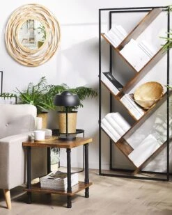 Dit fenomenale meubelstuk kenmerkt zich door zijn eenvoudige vormgeving. Deze bijzettafel oogt uiterst verfijnd en trendy tegelijkertijd. Glazen, tijdschriften, boeken en ander klein items plaats je binnen handbereik in de twee ruime opbergvakken met een donkere houten look. Het decoratieve zwart gepoedercoate metalen frame geeft de tafel een industriële uitstraling.