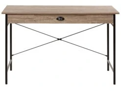 Deze thuiskantoor set is een goede keuze voor zowel moderne als traditionele interieurs. Het stijlvolle bureau, ontworpen met een x-frame en stevige poten van gepoedercoat staal, heeft een hoogwaardig MDF-tafelblad met een PVC-folie-afwerking die hout imiteert. Dankzij de diepe lade en boekenkast met brede planken biedt de bureauset extra ruimte voor schriften, mappen en andere studiespullen.