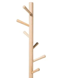 Een strak design en een natuurlijke uitstraling kenmerken deze praktische kapstok. De stevige basis bestaat uit een zware cementplaat met een witte stalen kap. Het bovenste deel van de kapstok is gemaakt van massief dennenhout in een warme, natuurlijke houttint. Het heeft zes afgeronde en verspringende houten haken, die een ideale opslagruimte bieden voor jassen, jassen, tassen en hoeden.