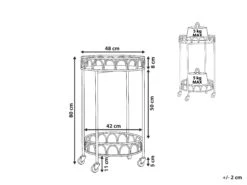 Als decoratieve bijzettafel in je woonkamer of als mini-bar in de eetkamer – deze indrukwekkende serveerwagen laat elke ruimte stralen. De versieringen in goud komen uitstekend overeen met de twee ronde planken met een terazzolook. Dankzij de vier zwenkwielen kan de trolley gemakkelijk heen en weer worden verplaatst.