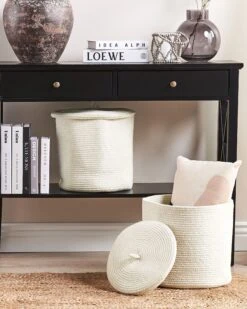 Deze mand staat perfect in je boho-geïnspireerde huis en biedt je handige opbergruimte. Hij kan worden gebruikt om je extra kussens of plaids in op te bergen, maar hij doet het ook goed in de badkamer, als wasmand. Het stuk wordt geleverd met een deksel, in bijpassende stijl en kleuren. Het handgemaakte accessoire is gemaakt van katoen, dus duurzaam en makkelijk schoon te maken.