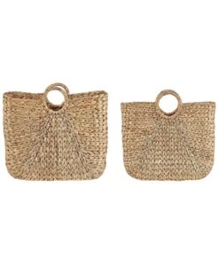 Deze twee met de hand gevlochten manden geven uw interieur veel sfeer en extra opbergruimte. Ze zijn gemaakt van waterhyacint en zijn vrij stijf, zodat ze hun vorm behouden. Ze hebben handvatten die het gemakkelijker maken om ze van de ene plaats naar de andere te dragen. De manden zijn perfect om alle soorten spullen in op te bergen, van wasgoed tot boeken of textiel.