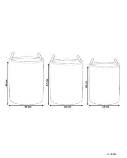 Deze set van 3 opbergmanden is een perfecte optie om elke kamer in je huis georganiseerd en schoon te houden. De stukken worden geleverd met hoezen die worden afgesloten met trekkoorden, zodat je wasgoed, speelgoed of andere spullen die je niet gebruikt gemakkelijk kunt verbergen. De producten zijn gemaakt van polyester en katoen, waardoor ze zowel functioneel als onderhoudsvriendelijk zijn.