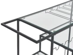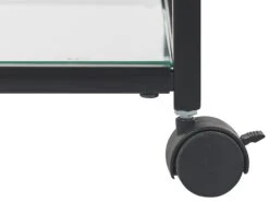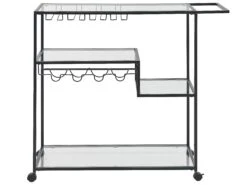 Een minimalistische propositie met een veelvoud aan toepassingen, deze keukentrolley is ontworpen met functionaliteit als doel. Uitgerust met flessen- en glazen rekken kan hij net zo goed dienst doen als volwaardige barwagen als voor het serveren van eten. Er is voldoende opbergruimte door vier open oppervlakken, terwijl rollende zwenkwielen met veiligheidsremmen ervoor zorgen dat, ongeacht de lading, de wagen moeiteloos kan worden verplaatst.