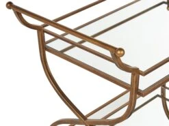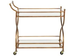 Maak je keuken compleet met deze trolley. Gemaakt van duurzaam metaal en goed te gebruiken tijdens feestjes met vrienden en familie. Omdat hij is voorzien van 2 ruime planken, kun je er veel drankjes of eten op zetten. Beide lagen hebben een gespiegeld oppervlak, waardoor het geheel er glamoureus uitziet. De trolly kan eenvoudig worden verplaatst dankzij de wielen.