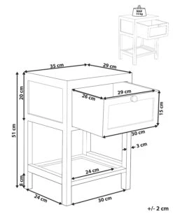 Dit nachtkastje is niet alleen een handig opbergmeubel voor je slaapkamer, maar zal ook zijn look verheffen en een frisse, boho-vibe brengen. Het stuk is gemaakt van hoogwaardig paulowniahout en heeft ook een natuurlijk rotanweefsel aan de voorkant, wat zeker de aandacht zal trekken. Het meubel heeft een lade, die kan worden gebruikt om verschillende kleine spullen in op te bergen, en een plank, waar je boeken of decoraties kunt plaatsen.