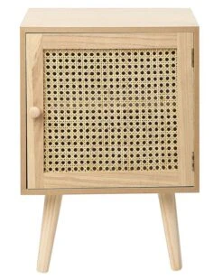 Elke slaapkamer heeft opbergruimte nodig in de buurt van het bed – en de gemakkelijkste manier om die te krijgen is door een nachtkastje als dit toe te voegen. Het is gemaakt van hoogwaardig bewerkt hout met een houten fineer en vereist geen dagelijks onderhoud. Het wordt geleverd met een kastruimte, verborgen achter een deur met een rotan front, die zeker de aandacht zal trekken van al je huisgasten.