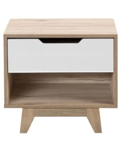 Dit nachtkastje met zijn moderne en minimalistische uitstraling voegt een elegante toets toe aan elke slaapkamer! Dankzij de ruime lade, die voldoende ruimte heeft voor alle kleine dingen, is dit product niet alleen esthetisch maar ook praktisch. Daarnaast is er de productie van hoogwaardige MDF – dit kastje biedt alles wat je hartje begeert!