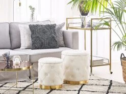 Witte poef in een set van 2 met opbergruimte en doorgestikte knopen