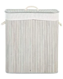 Als je genoeg hebt van willekeurig verspreide kleding in de badkamer of slaapkamer, is deze mand het perfecte accessoire voor jou. De hoge container heeft een voering met twee compartimenten voor een betere scheiding van de was en een deksel dat zorgt voor een nette uitstraling. De minimalistische stijl wordt geaccentueerd met gevlochten touwhandvatten voor gemakkelijke draagbaarheid. De natuurlijke bamboe planken waaruit de mand is gemaakt geven hem een ​​natuurlijke uitstraling, waardoor hij gemakkelijk in elke moderne ruimte past.
