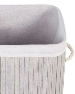 Compact en praktisch – zo kan deze wasmand worden omschreven. Het is gemaakt van bamboehout en heeft een solide constructie en een eenvoudig maar esthetisch ontwerp. De binnenkant is opgevuld met uitneembare en wasbare stof voor hygiënisch gebruik, terwijl het deksel en de zijkanten van de mand extra handvatten hebben die het transport vergemakkelijken. Dankzij het ruime ontwerp kan de mand zowel voor de was als voor het opbergen van je accessoires worden gebruikt.