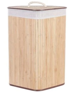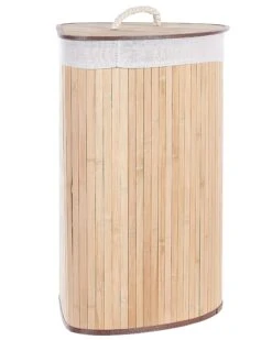 Deze ruime mand zal een grote hulp zijn om je ruimte georganiseerd en opgeruimd te houden. Hij is gemaakt van natuurlijk bamboe, heeft een deksel met handvat en is gestoffeerd met een verwijderbare bijpassende stof. Dankzij zijn vorm past de mand in de hoek van een kamer zonder tegelijkertijd veel ruimte in te nemen. Het zal goed functioneren als wasmand en als opslag voor je accessoires.