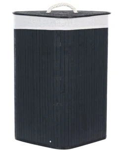 Deze ruime mand zal een grote hulp zijn om je ruimte georganiseerd en opgeruimd te houden. Hij is gemaakt van natuurlijk bamboe, heeft een deksel met handvat en is gestoffeerd met een verwijderbare bijpassende stof. Dankzij zijn vorm past de mand in de hoek van een kamer zonder tegelijkertijd veel ruimte in te nemen. Het zal goed functioneren als wasmand en als opslag voor je accessoires.